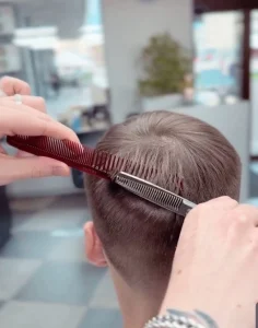 Erro comum: Nossa Solução: O Dia 1 do treinamento é dedicado a dominar a movimentação do pente, ensinando como encaixar o cabelo corretamente no pente para uma transição suave. Você aprenderá a técnica para conectar os cabelos de forma perfeita, sem deixar linhas marcadas.